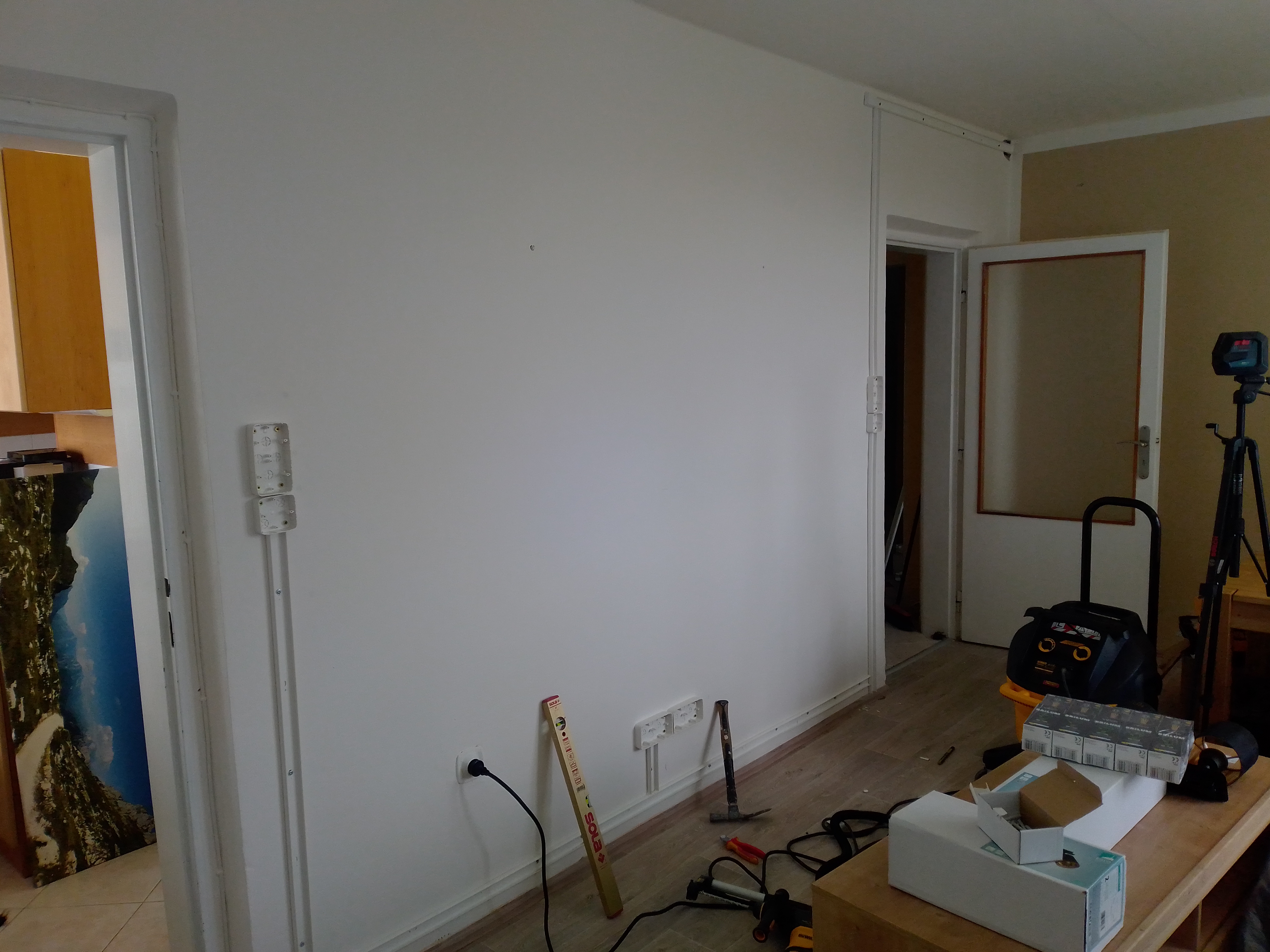 Částečná rekonstrukce elektroinstalace do instalačních lišt v panelovém bytě. Včetně revize.